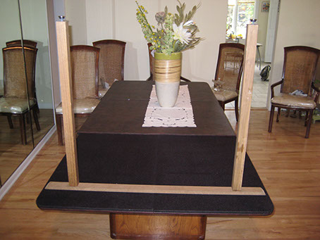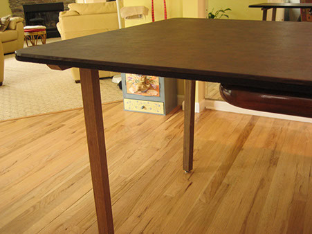 Legs get screwed to the back of pads and though the piece of wood known as a 'SPLINE'. This is what gives it support.