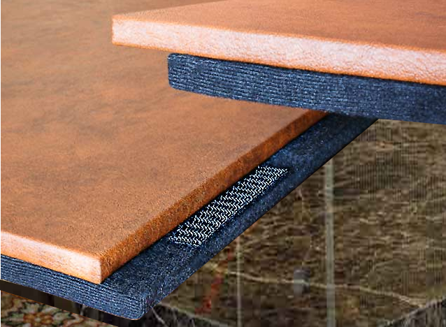 Pads utilize a 'Ship-Lap' locking system, not a vertical butt-up, insuring no spills go through the seam of the pads, protecting your table top and bottom of pads.